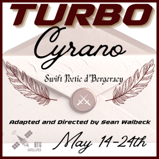 New Prospect Theatre 207 Prospect St, Bellingham, WA, United StatesBTG Satellites, Bellingham Theatre Guild’s low-budget production company presenting plays at the New Prospect Theatre, presents director/playwright Sean Walbeck’s “hasty” adaptation of Edmond Rostand’s classic as TURBO CYRANO: Swift Poetic d’Bergeracy, May 14-24, 2026, with 7:30 pm evening shows and matinees on Sundays at 2:00 pm.